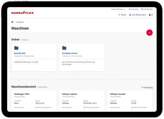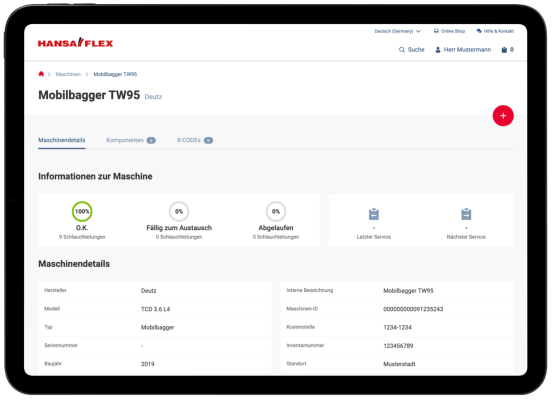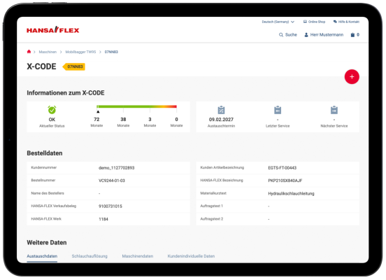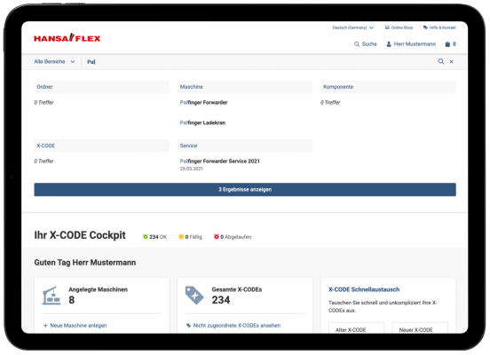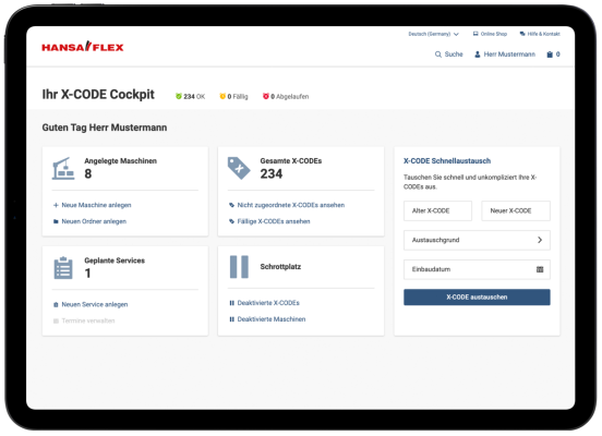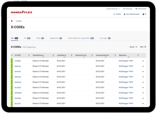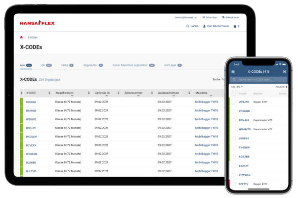X-CODE Manager klientu portālā My.HANSA-FLEX ir ērtā programmatūra jūsu hidraulikas uzturēšanai.